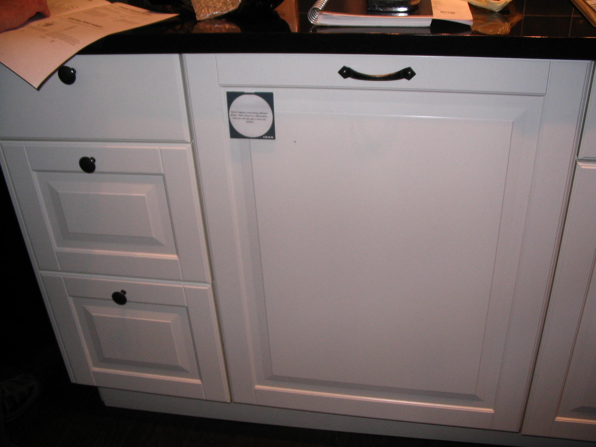 After looking at Home Depot’s cabinet choices, some of which we liked, we decided it was too expensive to buy from there. Our carpenter suggested we should check out Ikea. We went there and eren’t too hopeful, but to our surprise we ended up loving this cabinet style and purchasing several cabinets and doors for the kitchen.