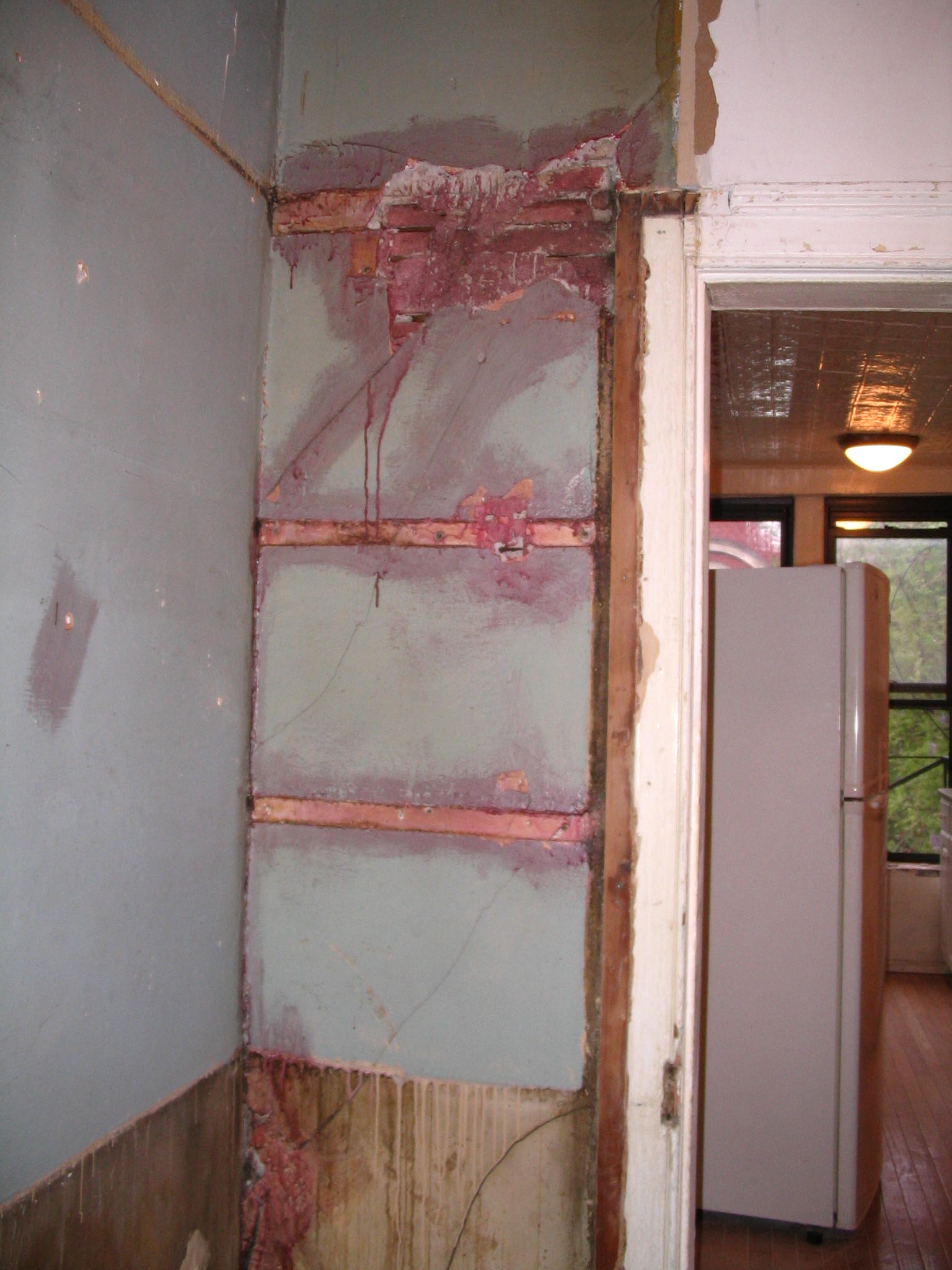 After the smelly closet wood was ripped out, our guys primed the inset with the pepto.