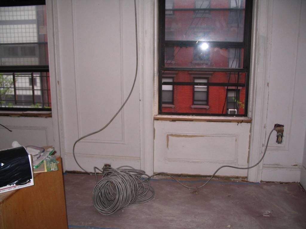 This is the right-side window which had an air conditioner outlet below out. We decided that we were going to have the air conditioner in the left window so we had a new air conditioner outlet installed that would be closer to the left window. This was the starting line for that outlet.