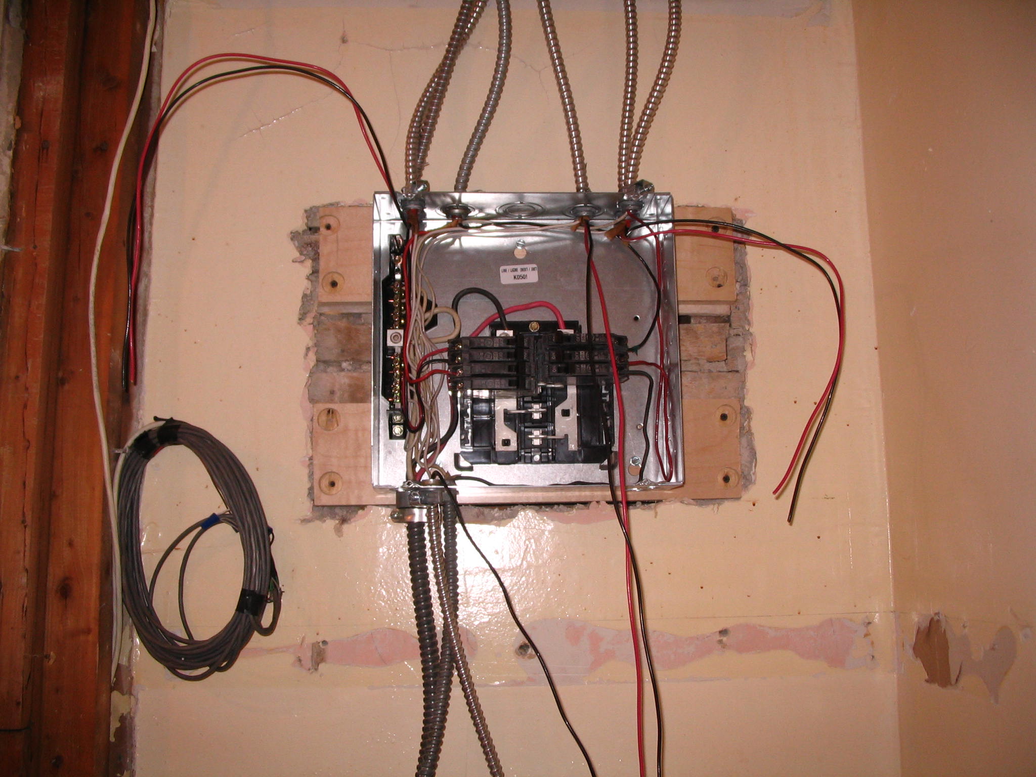Awesome! Our fuse box has been placed into a newly carved out niche in the wall. It will be perfectly hidden by our bathroom mirror.