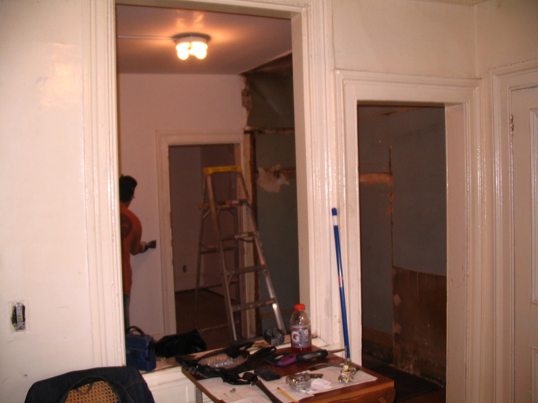 Years ago, New York apartment law insisted that apartments have 6 windows in order to help prevent tuberculosis which was rampant in the city at the time. With two windows in the living room, two in the kitchen, and 1 in the bathroom, this one was built to satisfy the law. The law never said the window had to be on the outside.